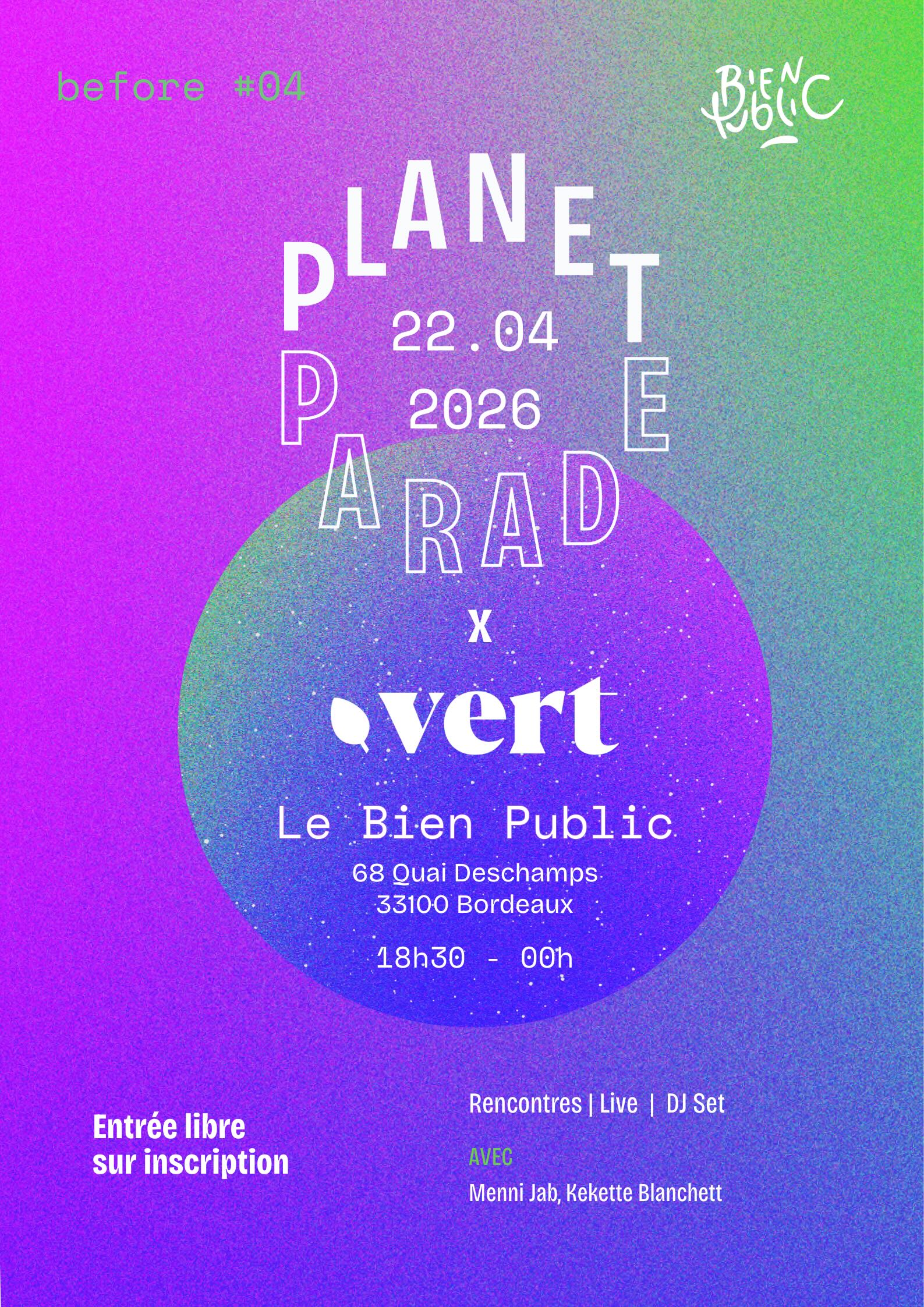 Bref, tout ce qu’il faut pour relier la communauté Planet Parade, celle de Vert et la nouvelle scène engagée Bordelaise, avant la grande fête collective de 2027.